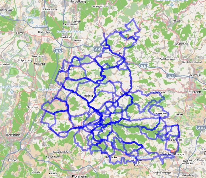 Mit viel Aufwand (Pressemitteilungen und Veranstaltungen) werden derzeit die 29 neuen Rad(rund-)wege im Gebiet Kraichgau-Stromberg beworben. Manch einer hat vielleicht auch schon die neuen Schilder entdeckt. Verantwortlich für die Werbung und auch die Wege ist der Kraichgau-Stromberg Tourismus e.V. Auf der Site sind die Wege schön beschrieben und können auch als GPS-Tracks heruntergeladen werden. Natürlich gibt es dort auch ein Kartenset zu bestellen.