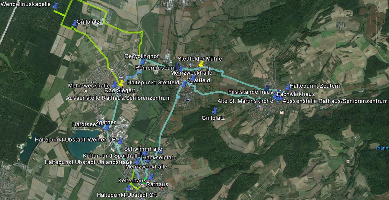 Auch wenn ich mich mit dem großen „I“ nicht anfreunden kann, so finde ich doch, Ubstadt-Weiher braucht so was auch. Und weil man ja nicht nur sagen soll „man müsste mal“, hab ich mir eine kurze (14 km blau) bzw. eine etwas längere (21 km grün) Route ausgedacht. Natürlich bin ich auch bereit, mich an der Orga zu beteiligen und ein solche Tour zu (durchzu)führen.