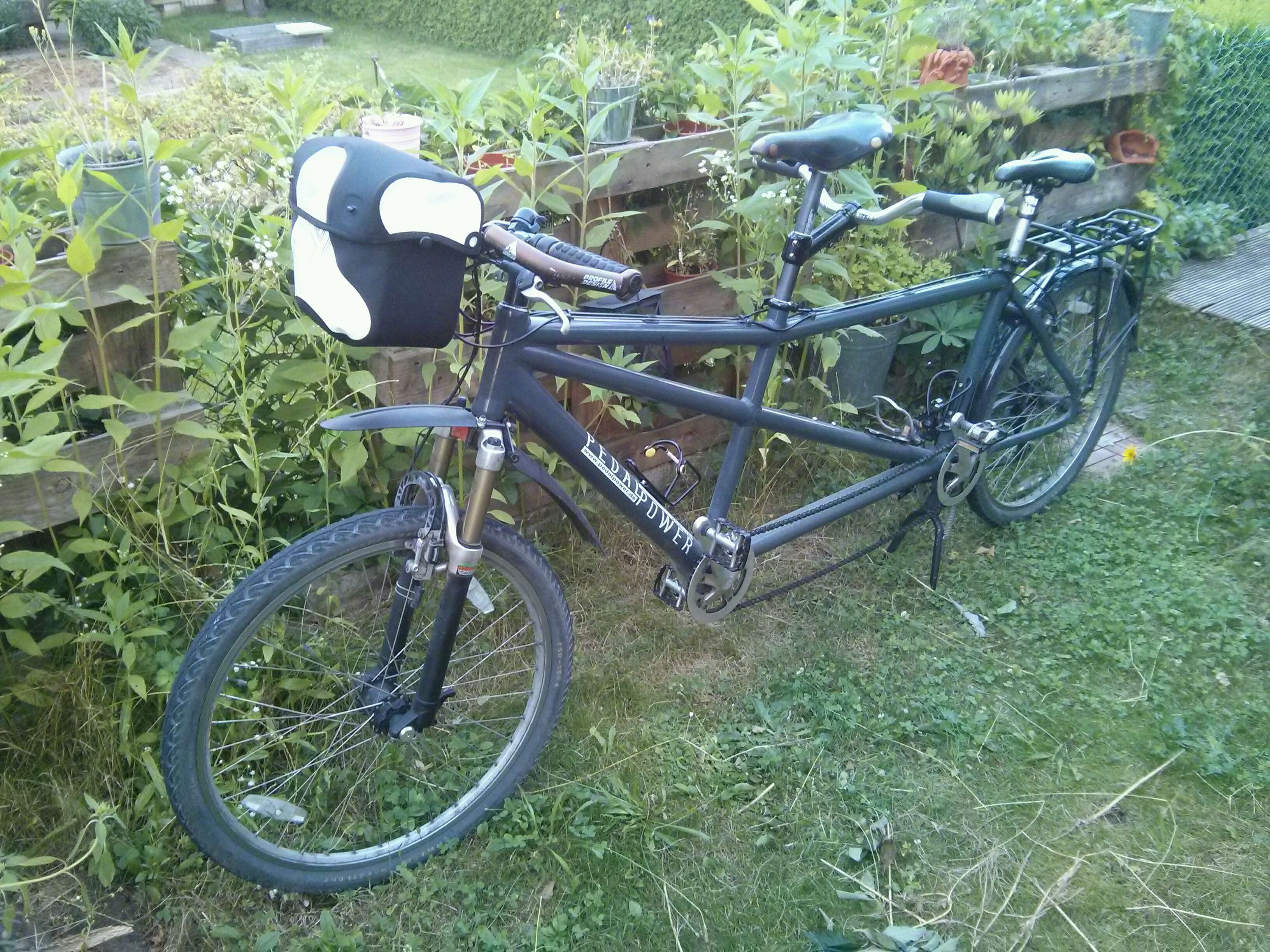 Jetzt kommt die Mathematik ins Spiel, denn dies ist das 8 1/2. Rad. Natürlich gehört mir vom Tandem nur die vordere Hälfte. Leider fahren wir das Schmuckstück nicht mehr so häufig. Mit Kindern sind Singles halt praktischer. Sollte mal eine Rohloff bekommen, das lohnt sich aber derzeit nicht.