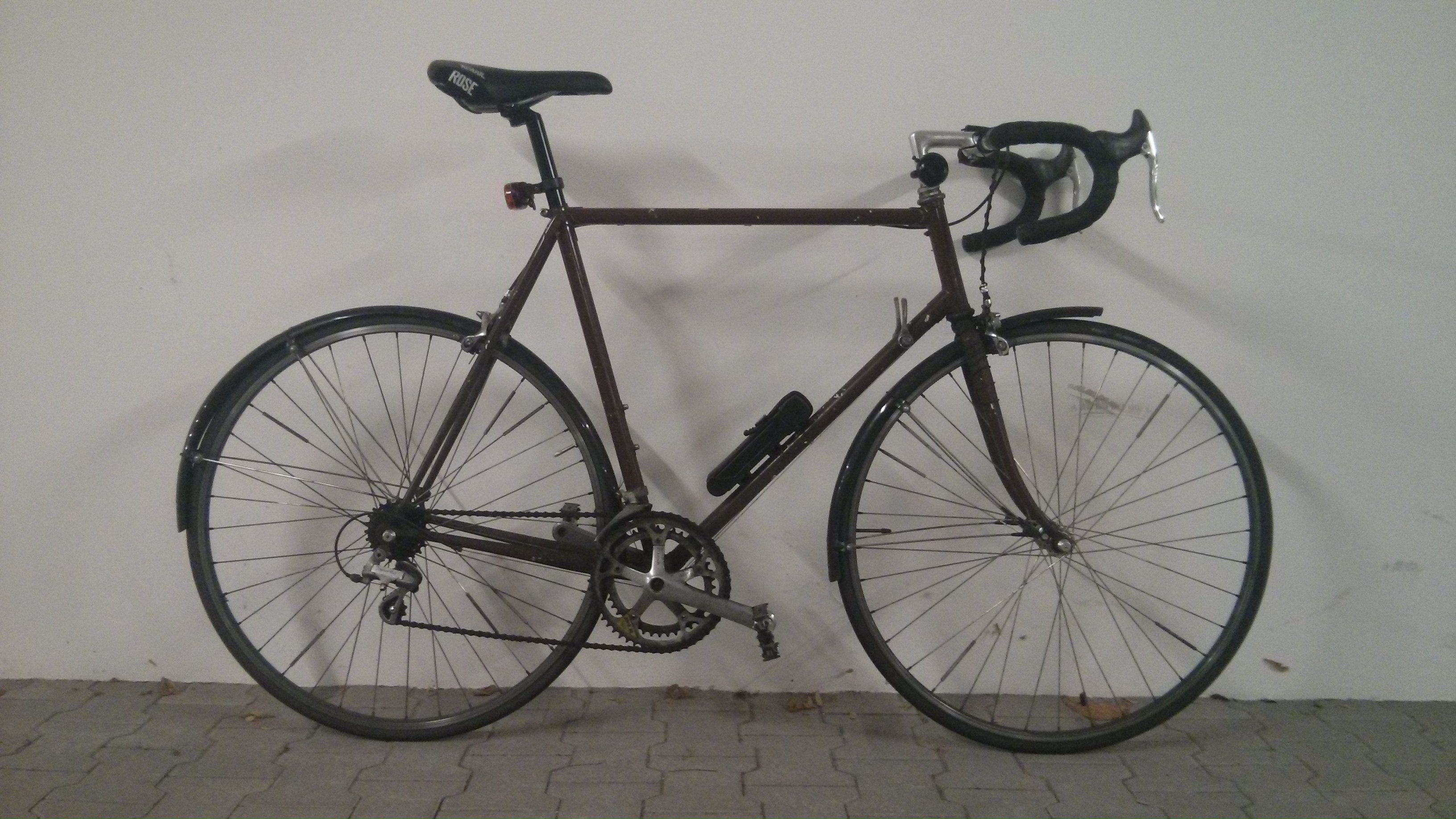 Ja, mein zweites Bahnhofsrad (Durlach – Karlsruhe) hat eigentlich keinen Namen. Ich habs über die Bucht ersteigert. Die Marke ist unbekannt und weil es stümperhaft neu lackiert wurde auch nicht mehr erkennbar. Laut Verkäufer hat es einen Stahlrahmen aus Rohren von Tange, deshalb nenne ich es oft Tange oder schlicht „das Braune“. Über die Vorgeschichte mag ich auch gar nicht nachdenken…