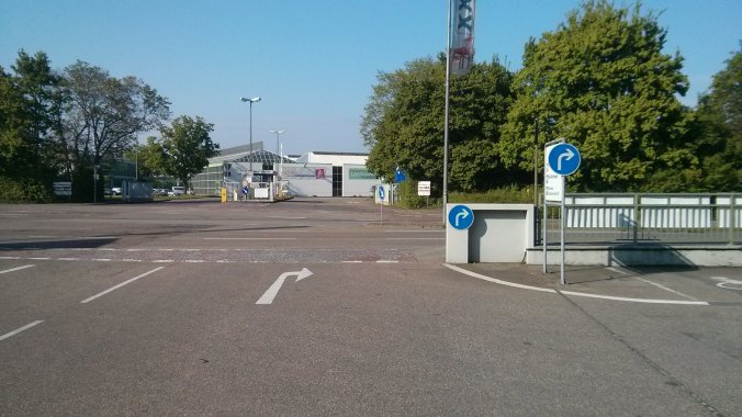 • Laut Aussage des Tiefbauamts kann man an der Beschilderung auch nichts ändern. Die Ausfahrt sei Privatgelände und damit wäre Mann Mobilia für den Beschaffung und Aufstellung von Schildern zuständig …