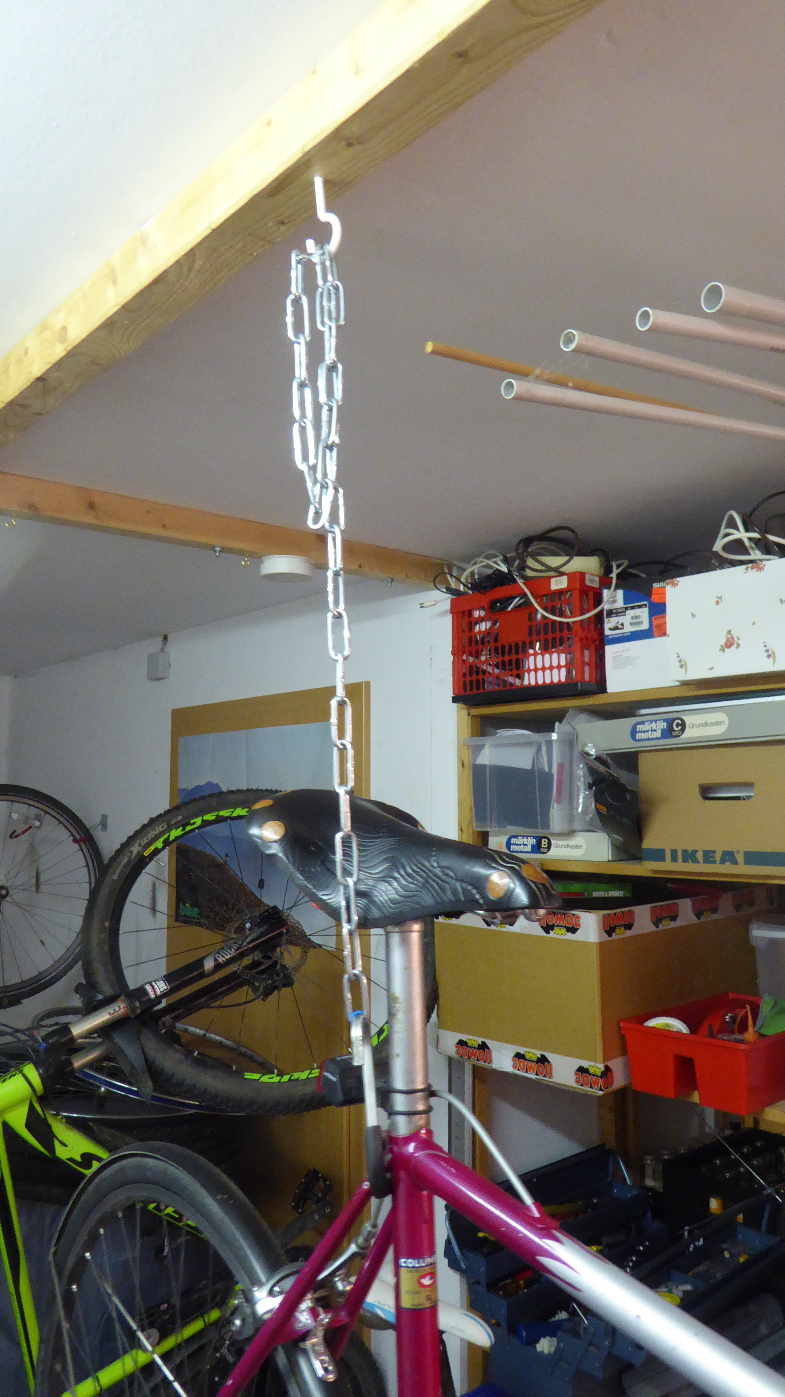 Wichtigstes Utensil sind natürlich Ketten an der Decke mit Haken…