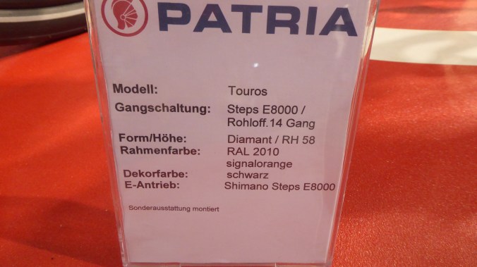 Patria steht auf meiner persönlichen Wunschliste eher im Mittelfeld. Aber was die Wunschfarbe angeht, konnte ich mir neue Anregungen holen. Patria war so nett, zu allen Ausstellungsrädern den RAL Farbton mitsamt der Nummer anzugeben.