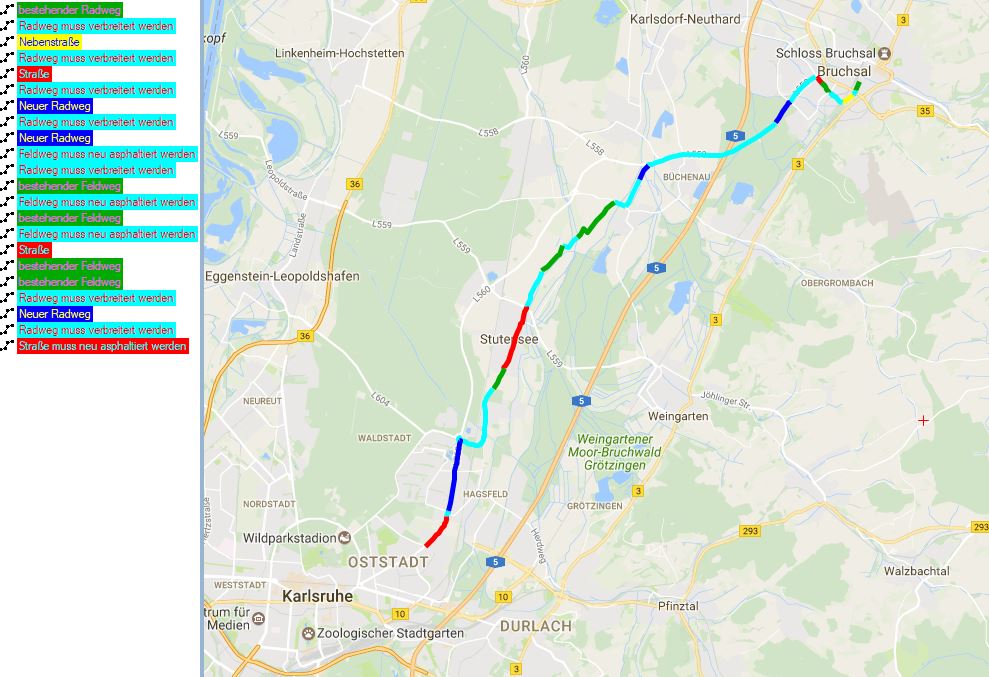 Hier im Landkreis Karlsruhe bzw. in der Region Mittlerer Oberrhein werden derzeit Machbarkeitsstudien für potenzielle Radschnellwege erarbeitet.