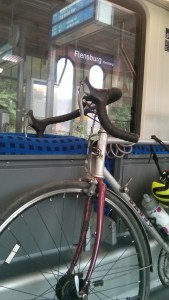 Von Flensburg hab ich nur ein Foto, weil ich gleich zum Bahnhof durchgefahren bin. Die letzten Jahre haben mich gelehrt, dass es nicht immer ganz einfach ist, spontan den Fernverkehr der DB mit dem Rad zu nutzen. Ich wollte also erstmal mein Ticket und vor allem meine Reservierungen haben und dann durch Flensburg bummeln und eine Unterkunft buchen.