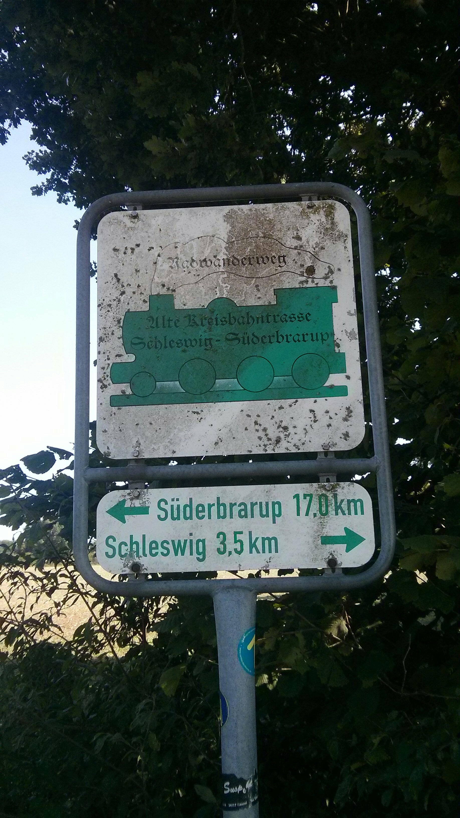 Bin dann aber auf den Bahnradweg der Schleswiger Kreisbahn geraten. Der ist ein Graus. Weil die Anliegergemeinden sich nicht auf eine Finanzierung einigen konnten, macht jeder sein eigenes Ding. Ich hab noch nie einen ausgeschilderten Bahnradweg erlebt, der so schlecht gepflegt war.