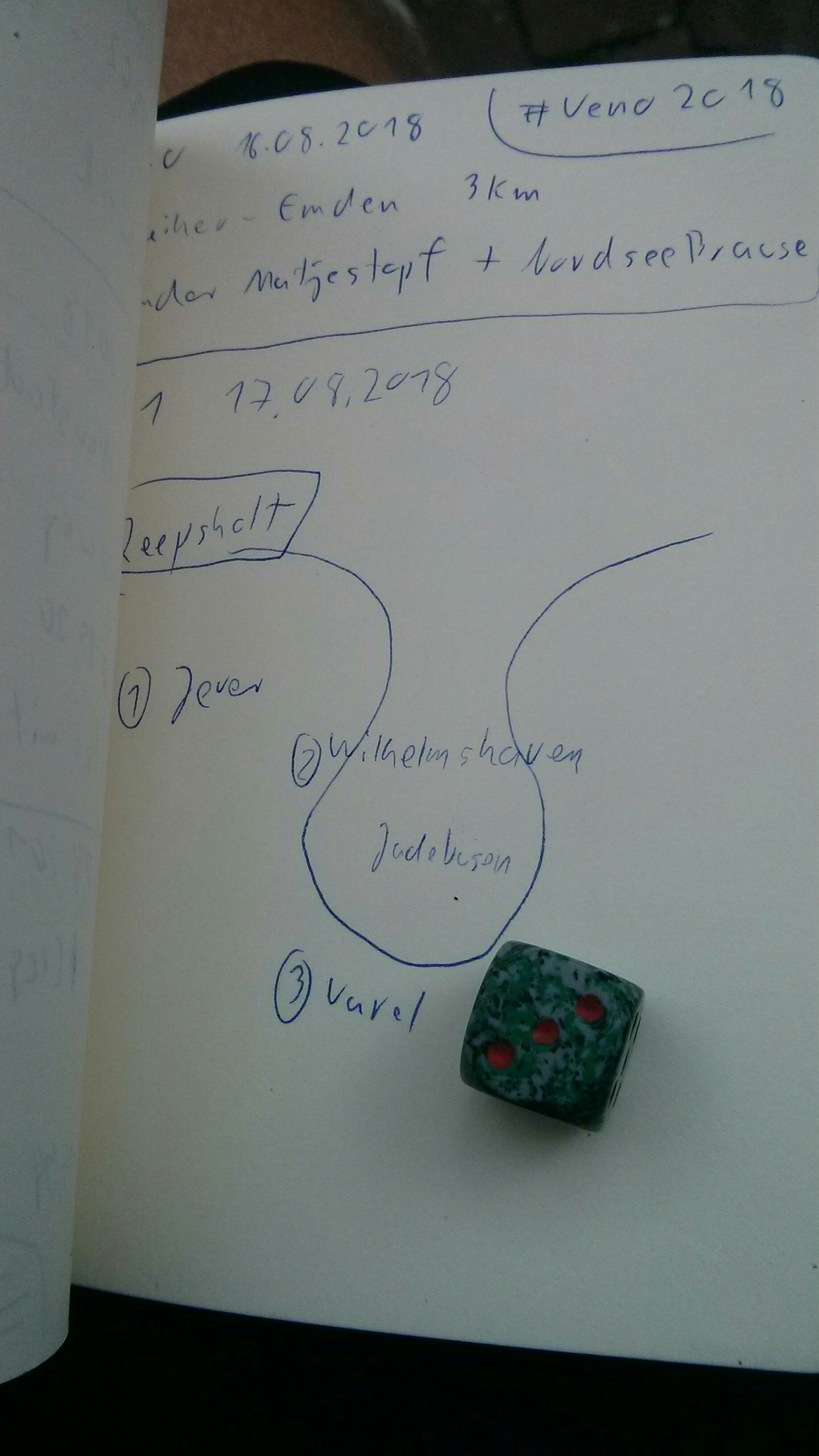 Der Würfel hat gesagt, ich soll Richtung Varel fahren.