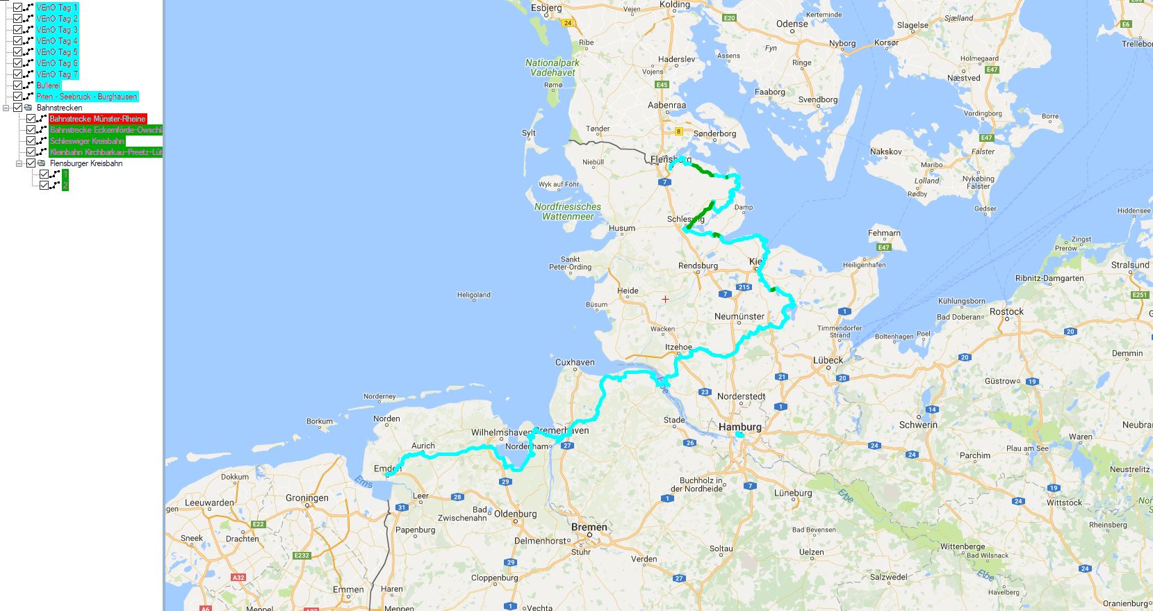 Ich nenn das mal Tag 0, weil ich an dem Tag nicht geradelt bin, sondern die meiste Zeit im Zug nach Emden verbracht habe.