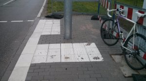 Es handelt sich demnach um eine „Getrennte Überquerungsstelle mit differenzierter Bordhöhe“. Für Rollstühle und Rollatoren gibt es eine Absenkung, für Blinde und Sehbehinderte soll der Bordstein mindestens 6 cm hoch sein.