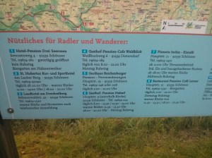Von so touristischen Informationstafeln am Ortseingang mache ich ein Foto, um mir das merken zu können. Konnte ich solche Hinweise nicht finden, rolle ich langsam durch und halte die Augen auf. Wenn mir der Ort gefällt, ich aber keinen Gasthof oder Hotel erspähen kann, nehme ich Google Maps zur Hilfe.