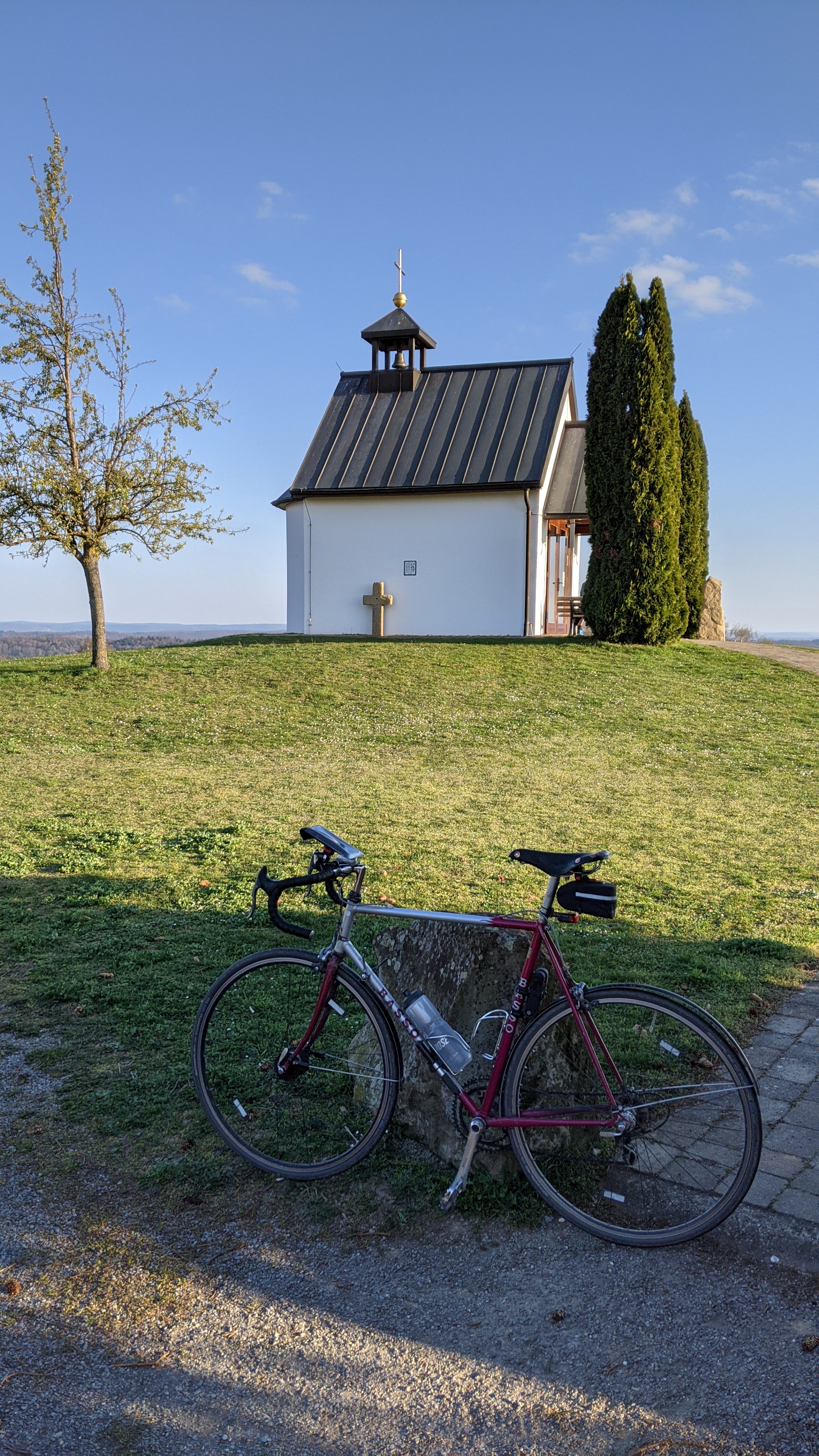 Mit dem Bild vom Basso leite ich geschickt zu ein paar Sehenswürdigkeiten über. Die Kapelle am Schindelberg ist für alle Rennradler und Triathleten im Kraichgau Pflichtprogramm.