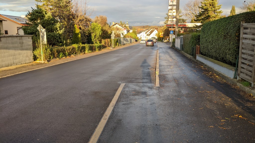 Für mich aber das wichtigste Feature ist die Einfädelung auf die B3 nach Ubstadt hinein. Diese soll die Radler:innen einladen, auf die Straße zu wechseln (wo sie ja hingehören) und die Autofahrer:innen darauf hinweisen, dass das so gehört. Denn auf dem Gehweg leben sie nicht ganz ungefährlich wegen der Tankstelle.