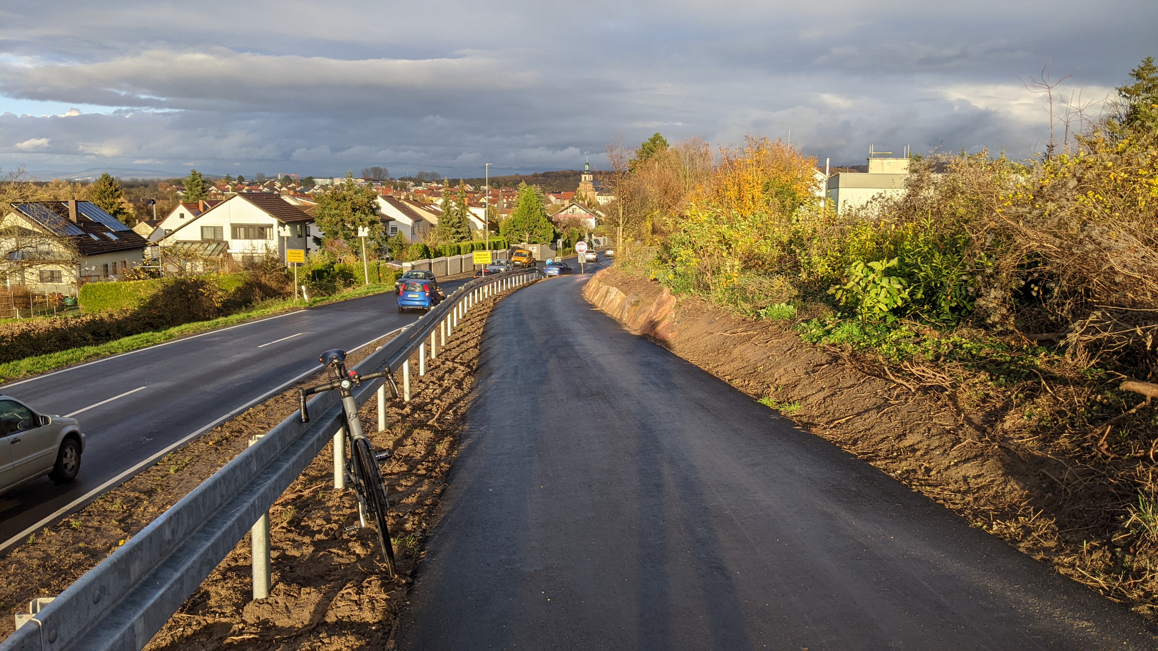 Die Neigung des Radweges wurde etwas entschärft. Das ging doch recht steil hoch.